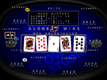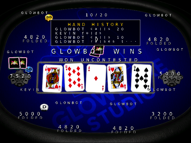 Now powered by GlowBot AI. A Monte Carlo driven, Dreamcast optimized, poker intelligence with adaptive personalities built from the ground up for Dream Table Poker. We STACKED it against that other slowki-poki AI, and it destroyed it!